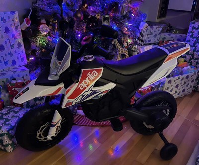 My 5yo son loves this! Since my husband had two Aprilias, we had to buy this when we saw it. It took less than an hour to put together, is pretty solid, and is not as heavy as I thought it would be. I like that it doesn’t go very fast…and my son likes looking like he’s a motorcyclist.
