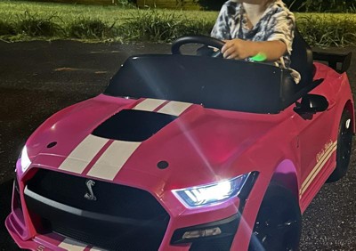 Experience the thrill of the licensed Ford Mustang Shelby GT500 ride on car, designed for adventurous young explorers. This dynamic car boasts 2 speed options, one-button start, and smooth start and stop features for a seamless ride. The exciting media center includes a USB port, radio, and music player, along with a realistic horn and engine sound. Children can drive by themselves, and parents can use the remote control to guide them safely. Easy operation is facilitated with a battery display, volume button, and light bar switch. The treaded wheels conquer various surfaces effortlessly. In addition, it offers 1-2 hours of playtime. Premium details like rearview mirrors and LED lights make this electric toy car an ideal gift for children aged 3-8. Note that AA batteries and AAA batteries are not included.