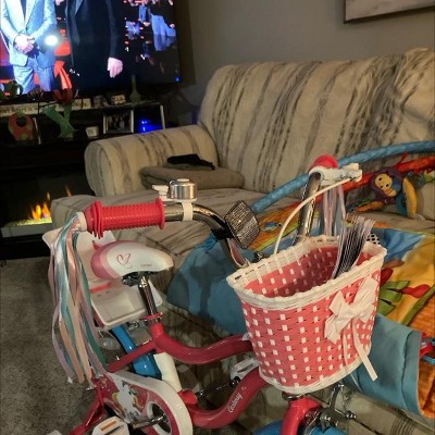 Costway 14 Inch Kids Bike with Basket Doll Seat & Colorful Streamers 2 Training Wheels Pink