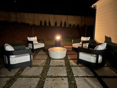 The package arrived earlier than expected, and I eagerly opened it. Suffice to say, I was excited when it came out because it was actually bigger than I thought it would be. Its design is unique because most of it is square. It looks great on our patio, and it's warm.