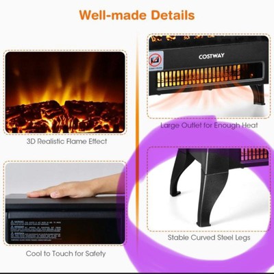 Costway 18'' Electric Fireplace Stove Freestanding Heater W/ Flame Effect 1400W