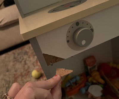 This is the WORST item I have ever bought from Target. The customer service I experienced after was unacceptable, too. I ordered this for my niece and nephews for christmas. It took 4 hours to build. Within 10 minutes of play, the oven door COMPLETELY cracked off. I called Target. They would not replace it. My dad went to a LUMBER YARD to get a new piece of custom wood to fit the oven space. We painted it and reattached it. The next day, another door and the sink cracked off. I cannot believe it. I have been on hold with target for 45 minutes talking to 4 different people. All I want is a gift card for the value of the kitchen so I can buy a new, safer plastic one without nails and woodchips sticking out of it. Unbelieveable. Do not buy!! Save yourselves!!
