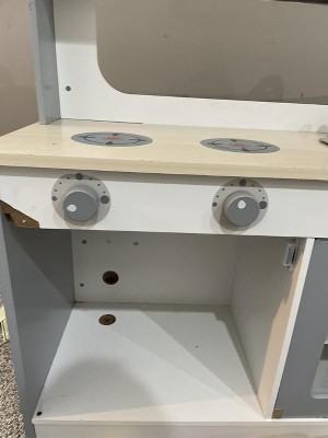First day we put it together our toddler opened the door below the stove and it fell completely apart. Do not recommend. He barely touched it and it fell apart. The price is WAY too high for such horrible quality. See photos attached