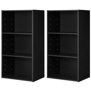 Costway 2 PCS 3 Tier Open Shelf Bookcase Multi-functional Storage Display Cabinet Black