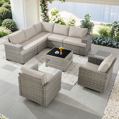 Costway 2 PCS Aluminum Single Sofa Outdoor Furniture Set with Thick Back & Seat Cushions Grey