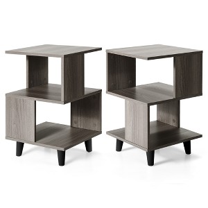 Costway 2 PCS Nightstand Set Modern Side End Table Storage Shelf Grey