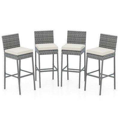 Costway 2 PCS Patio Wicker Barstools Bar Height Chairs W/ Cushions Backyard Off White