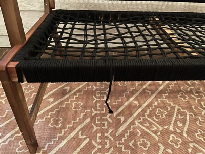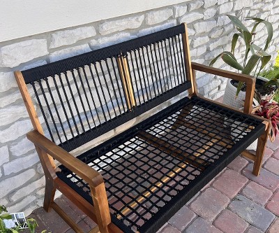 This bench offers a modern and stylish design with a combination of rope and acacia wood, making it a beautiful addition to any space. While many guests appreciate its aesthetic appeal and ease of assembly, some have encountered issues with durability, particularly with the rope seating and wood frame. It's ideal for indoor or covered outdoor use, providing a cozy seating option for two.
