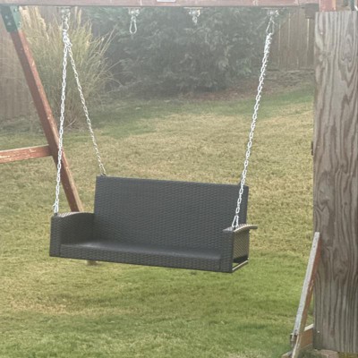 Costway 2-Person Patio Rattan Hanging Porch Swing Bench Chair Cushion Black