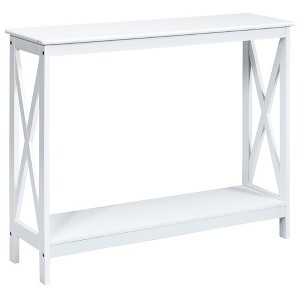 Costway 2-Tier Console Table x-Design Bookshelf Sofa Side Accent Table w/Shelf White\ Black\Espresso\Wood Grain