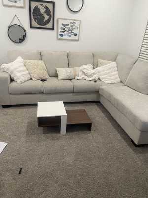 This is a lovely little coffee table set. I had a hard time putting it together, but that was probably because I couldn't understand the instructions. Once I did, it was very easy to put together. This is the perfect size for a coffee table and easy to move out of the way when entertaining guests. The wood finish is very beautiful. Overall, this is a great coffee table set. One of the tables is slightly higher than the armrest of the sofa, and the other is slightly lower.