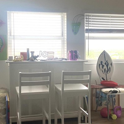I purchased these on sale! I had my eyes on them for a few weeks. They are counter height pure white wide seat and perfect plus they were easy to assemble! They are perfect for my Bar! Best deal ever .