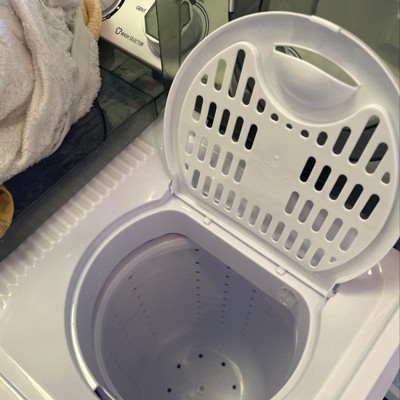 I accidentally bought this as a replacement for a smaller machine that broke . When it arrived I realized it was much bigger than expected and was pleasantly surprised . This machine will wash a full load of laundry perfectly . The spin cycle most definitely wrings the items sufficiently to hang dry or put in the dryer . The quality of the machine is durable and light enough for me to slide into my bathroom . I hook it up with a rinseroo and drain the water into the toilet . This machine is so easy to use and convenient . My only complaint is at the end of each use I have to maneuver the drain hose to completely empty it . Honestly it's fine . I love this machine and recommend to anyone who doesn't have the luxury of a washer dryer hookup in their apartment . A solid buy , definitely recommend .