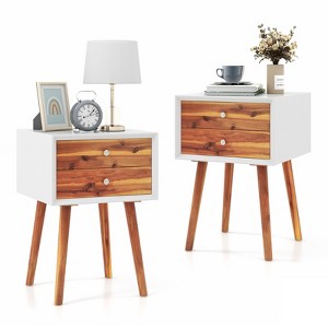 Costway 2PCS Wooden Nightstand Mid-Century End Side Table W/2 Storage Drawers