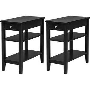 Costway 2PCS 3-Tier End Table Sofa Side Table Nightstand w/ Shelf & Drawer
