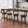 The 360-degree swivel seat allows for free movement and easy conversation. Coupled with a cushioned seat, these stools are ideal for extended seating periods. The faux leather upholstery not only enhances comfort but also makes maintenance a breeze. Besides, the ergonomic backrest and integrated footrest offer reliable support and optimal relaxation. Crafted with a solid rubber wood frame, these bar stools are built to provide durability and stability. These bar height chairs are perfect for your kitchen island, dining room, home bar, or pub, offering both style and comfort.