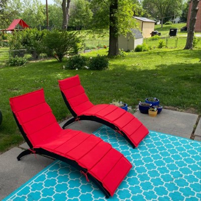 Costway 2PCS Folding Patio Rattan Lounge Chair Chaise Cushioned Portable Garden Lawn Red