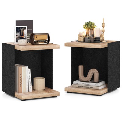 Costway 2PCS Nightstand Mid Century Modern Bedside Table w/ Drawer Open storage Shelf