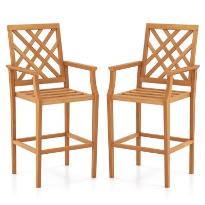 Costway 2PCS/4PCS Patio PE Wicker Bar Chairs Height Barstools with Acacia Wood Armrests Balcony