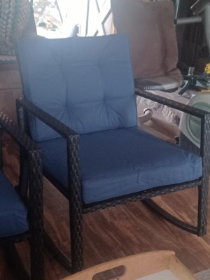 Costway 2PCS Patio Rattan Rocker Chair Outdoor Glider Wicker Rocking Chair Cushion Red