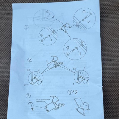 Took forever to do 1 rocker! After redoing several times got it. Once I had 2 screw left for the seat it was tough getting them in. Once I sat down and I mean sat against the back to rock I stayed in that position! If I wanted a chair I would’ve bought one! You can’t sit back and rock!