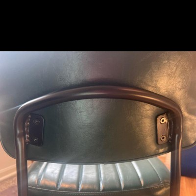 This chair is very comfortable and sturdy. The only shortcoming is the vinyl upholstery, but that makes it easy to clean, so there is that.