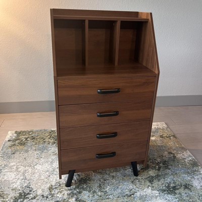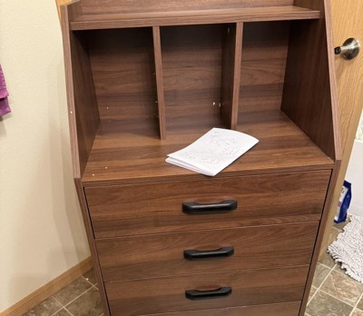 Wooden frame contains 2 anti-tipping kits for great stability, so you can make full use of the 3-cube shelf, wide countertop and 4 drawers to stably store various items. Plus, The top has a 1.5'' high edge to avoid accidental falling. Each drawer has metal buffering slides for smooth opening. And each leg is fitted with an anti-slip pad to prevent scratches on the floor. For your preference, the chest of drawers is applicable to bedroom, living room or study room, working as a storage cabinet or bookcase. Also, its assembly and maintenance are very simple.