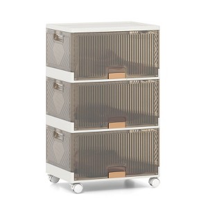 The stackable storage bin is a practical and versatile solution for keeping your belongings organized. With 13.5Gal large load capacity, it offers plenty of space to store shoes, clothes, books, or food. Its flexible modular design allows you to customize the layout by splitting and combining cabinets as needed. The collapsible bins are easy to fold for convenient storage and quick setup. Equipped with detachable universal wheels, the storage bin can be moved around effortlessly, and 2 lockable wheels provide stability when stationary. Crafted from premium PP material, the cabinet is deformation-resistant and safe to use. Convenient handles make it easy to reach items inside, while side clips ensure secure stacking for stability and organization in any space. The stackable storage bin is an ideal storage solution for various needs in your home.