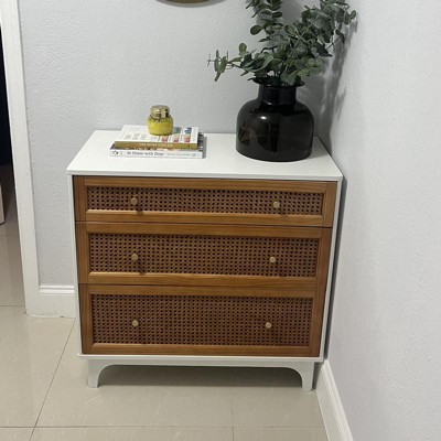 Costway 3-Drawer Rattan Dresser Modern Closet Chest Storage Cabinet Living Room Entryway
