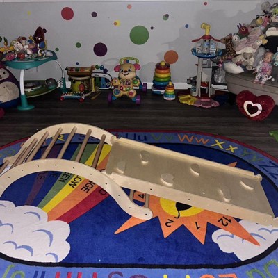 - 3-in-1 Climbing Ladder Set: Our multifunctional kids playset comes with a climbing arch and a reversible ramp. You can use 2 parts together or separately, which offers various ways for playing. And the reversible ramp can be used as a crawling ladder or a slide as needed. In addition, the arch is not only a climber but also a rocker, and there is a mat included for comfortable sitting.