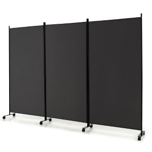 Costway 3-Panel Folding Room Divider 6Ft Rolling Privacy Screen withLockable Wheels Black/Brown/Grey/White