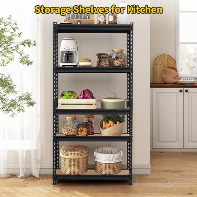 - 5-Tier Large Shelf: Meet your various storage needs with this multi-layered spacious storage shelf that offers ample space for organizing your belongings. Meanwhile, the spacious layers allow you to easily divide and organize your items in order, such as tools, kitchenware, boxes, books and more, providing a structured and efficient storage solution.