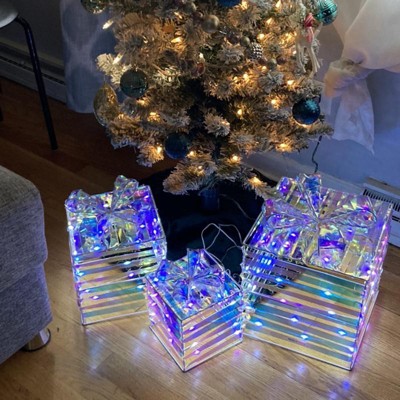 Illuminate your holiday decoration with our unique set of 3 lighted Christmas gift boxes.