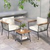 Costway 3 PCS Patio Furniture Set with 2-Tier Coffee Table Acacia Wood Armrests Tabletop