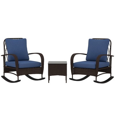 Costway 3 PCS Patio Furniture Set with 2-Tier Side Table and Cushions for Porch Brown