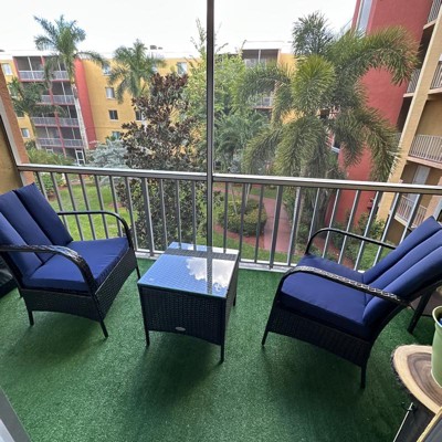 The furniture is nice looking and comfortable and I would have given a rating of 4 or 5, except for some key issues: 1) It is extremely difficult to assemble. I have assembled dozens of items over the past 40 years and this was, by far, the most difficult. The first chair took over 6 hours. The fastest was 1.5 hours. It is very difficult to align the bolts and holes. Sometimes there were loose pieces of metal in the holes that had to be removed before a bolt could be inserted. The provided Allen wrench was poor fitting and very hard to maneuver in tight places. Hints to speed up assembly: check all screw holes first to be sure there are no metal blockages and make sure to keep everything very loose until all bolts are started. 2) It arrived with some broken and loose wicker on the coffee table and chairs. The only solution from the Costway company was to reimburse us $30, via PayPal. If you don’t have PayPal, you’ll have to set-up an account to get a refund. I was able to successfully glue the parts using Gorilla glue. 3) The seat cushions tend to slide out from under you in a very short time of sitting. I had to have ties sewn onto the back of the cushion so it could be tied to the chair. We've decided to keep the furniture set, because although they were a real pain to put together, they do look nice and are comfortable. Plus, who wants to deal with taking them apart!?!
