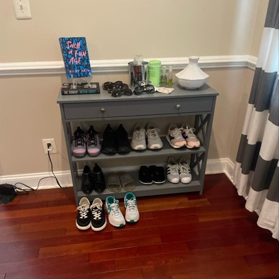 I love the size of this table, it fits perfectly in my entryway. I use it to store the kids shoes and items at the bottom