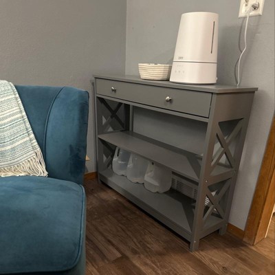 Costway 3-Tier Console Table X-Design Sofa Entryway Table with Drawer & Shelves Gray\ Espresso