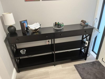 I love my new console table. I purchased it to sever as a little table for my things to store as I leave and come into the house. I have a console by the from door but I really want that to just be for decor and not mail or my sunglasses. With this table I store my shoes on it, my sunglasses, hand sanitizer , keys, etc. I have a really open foyer and needed the extra table to keep things flowing. I did not like the instructions. I had to find a YouTube video to help me out a little. But overall I have no other complaints. It was a great purchase.