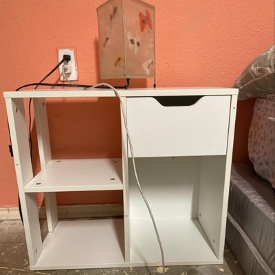 I purchased this side table for my son's bedroom. I like that it's not just a side table, but also provides some storage for all his toys & stuffed animals. The drawer is great for his little treasures. And the cubbies are nice as you can add baskets or bins for easy storage. The table is still on the small side, so it's great for a kids bedroom. My father-in-law put this together and did say it took him a little longer than expected to assemble. It took him about an hour to build.
