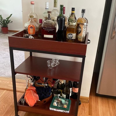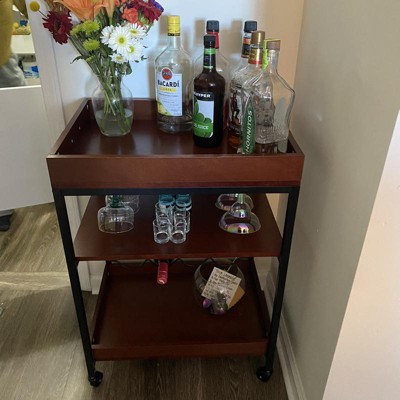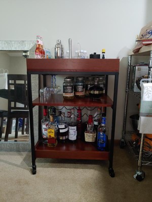 This bar cart was very complicated to assemble. The wine rack is also unusable — I can only store one or two bottles because they slide off.