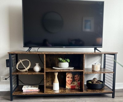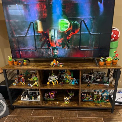 This TV stand is a stylish and sturdy addition to any living room, offering a modern industrial look with its wood and metal design. Guests appreciate its ease of assembly and versatility, making it perfect for displaying items like LEGO sets or serving as an organizer. While some guests encountered issues with assembly instructions and missing parts, the overall quality and aesthetic appeal make it a worthwhile purchase.