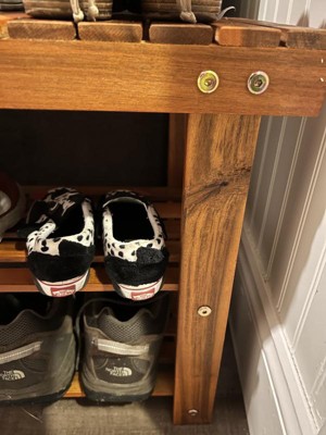 - Sturdy and Durable Quality: Our shoe racks are made of FCS certified Acacia woods, which are hard, corrosion resistant and durable for long time use. The boards are fixed with galvanized steel screws to ensure a firm and stable structure, and can withstand a person weighting about 180 lbs.