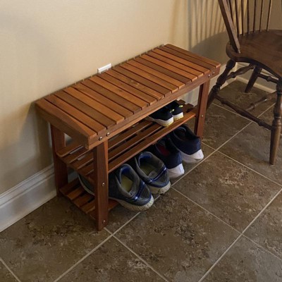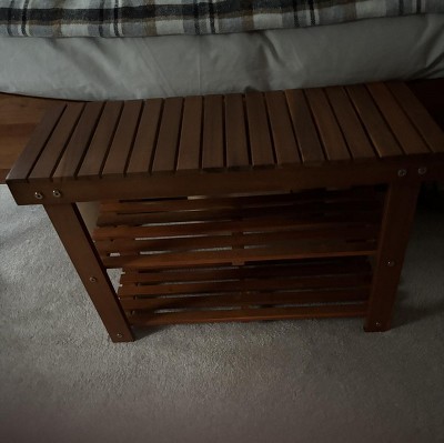 The Shoe Rack Bench is sturdy and easy to assemble, however the orange stain was ill-suited for entry-way furniture. I chose not to disassemble and return it since it sits in a stairwell. I would not order this bench again due to poor stain choice.
