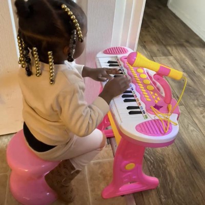 We bought this piano set for our 2yr old granddaughter. She loved it!! I’m so glad that it came with a stool.