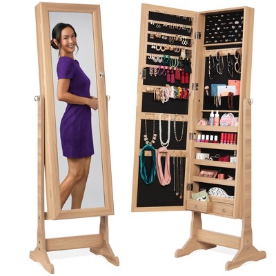 Costway 360degree Rotatable Jewelry Cabinet 2-in-1 Lockable Mirrored Organizer White/Black/Dark Brown/Gray/Blue/Pink/Purple/Dark Gray