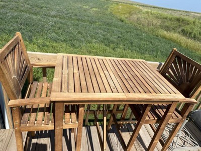 Just an overall terrible product. Let’s start with the chairs. They were missing hardware which was needed to screw on the back rests. So instead of sending us the required hardware we we’re required to send the whole product back (it took us 10 plus hours to assemble). We decided to keep it all and do without. 2 months in and the chair wood is cracking. I wouldn’t have anyone over 200lbs on this furniture. But hey, at least they look great, right? Next up the the table. It took the longest to assemble because the directions were unclear. Numerous times we had to disassemble because the wood/screws weren’t aligned. Spent a whole day working on this table because of the manufactures ineptitude. 2 months in the wood hasn’t cracked, however, it is rather creaky. Fine enough for some drinks and appetizers, but don’t try to eat a steak on it. Save yourself the time and money and buy another product. Target should be ashamed for attaching themselves to this piece of garbage.