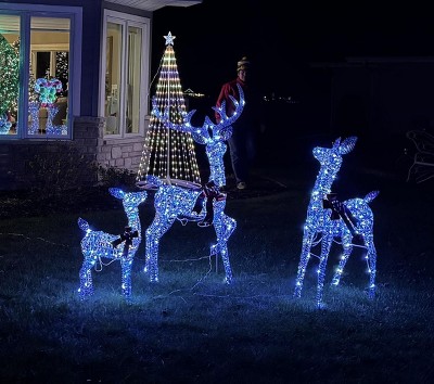 - 215 Cold White LED Lights: This family of reindeer decoration shines brightly with a total of 215 cold white LED lights (105 lights for the buck, 70 for the doe, and 40 for the fawn), easily adding a bright, festive glow to your holiday evenings.