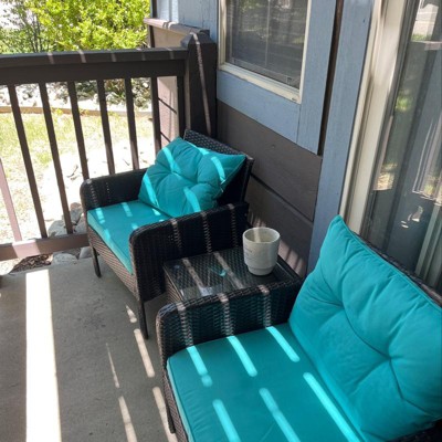 Love this patio set! It's very comfortable and wide so there's plenty of space and it doesn't feel cramped.