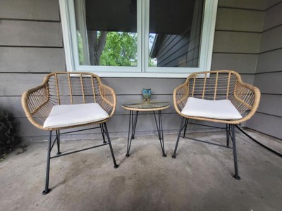Love this nuetral Rattan Bistro set. Fits perfectly in smaller spaces & looks amazing. Pretty comfortable & sturdy. Was easy to assemble. Gives such inviting summer vibes, great to sit in while enjoying morning coffee.